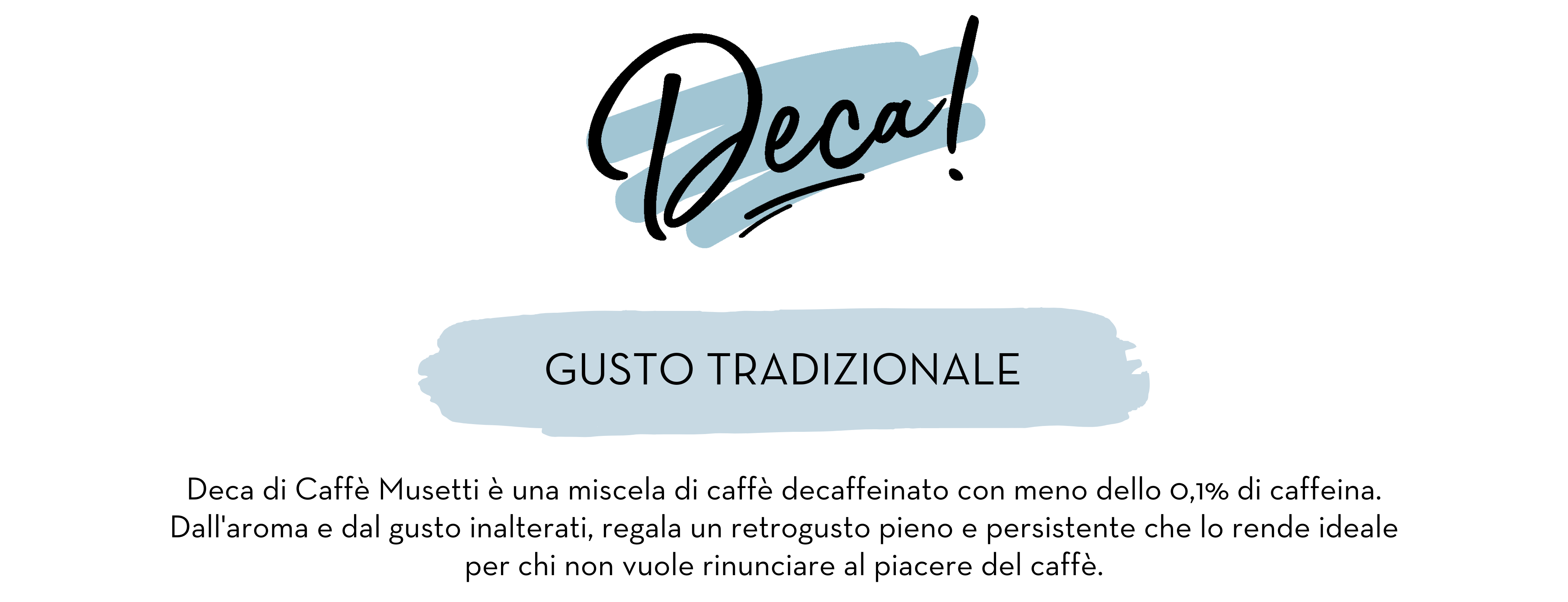 Deca: Entkoffeinierte Kaffeemischung, weniger als 0,1 % Koffein, 100 % traditioneller Geschmack. Süß und von einem zarten Aroma geprägt, mit einem vollen und anhaltenden Abgang. Es richtet sich an diejenigen, die auf Koffein verzichten möchten, ohne den Kaffeegenuss zu verlieren.